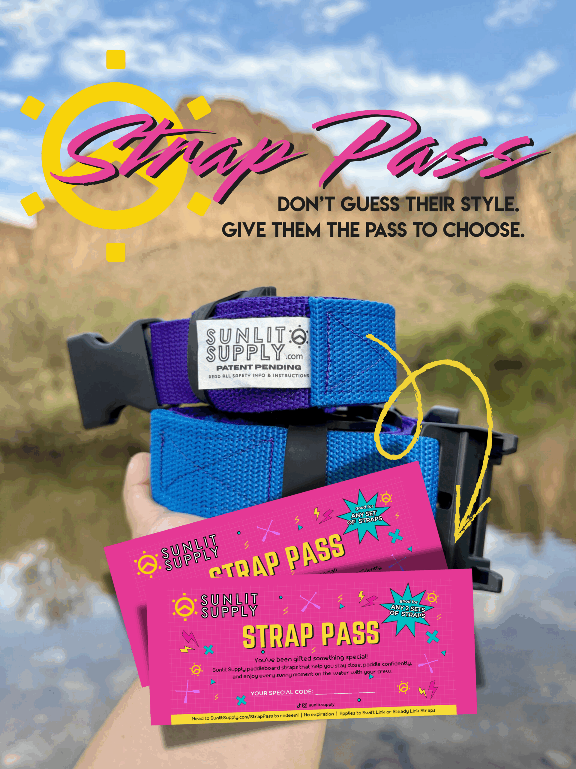 Transform any outing into an epic adventure with our patent-pending Steady Link Paddleboard Straps in our Electric Berry color. Effortlessly combine boards, secure your gear, and glide in perfect harmony—whether you’re cruising solo or paddling with friends. This item comes with 2 straps.